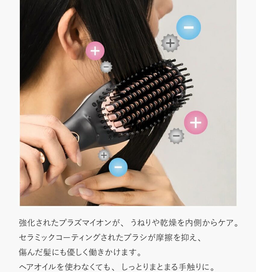 ブラシ1本1本に熱が均等に伝わる構造で、髪をとかすだけで自然にまとまります。