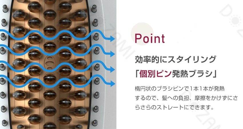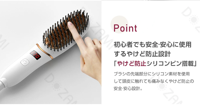 また、ブラシピン1本1本の先端が耐熱素材のキャップ構造になっているため、地肌に触れても熱くなりにくい安全設計。