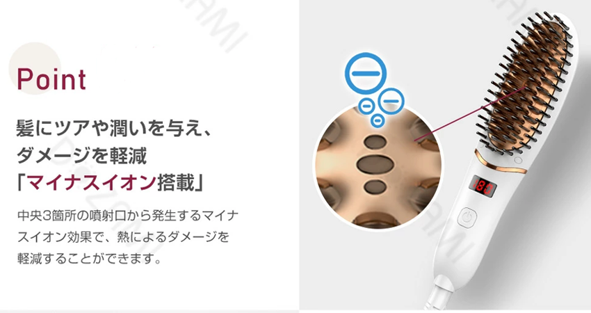 | 機能 | マイナスイオン3噴射口 デジタル温度表示 30分オートOFF 火傷防止ピン |