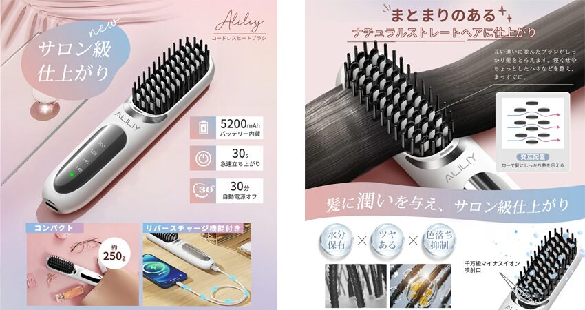【2025年最新】Aliliy コードレスヒートブラシ QL001 口コミ・レビュー徹底解説|外出先でも使える新世代ストレートブラシ