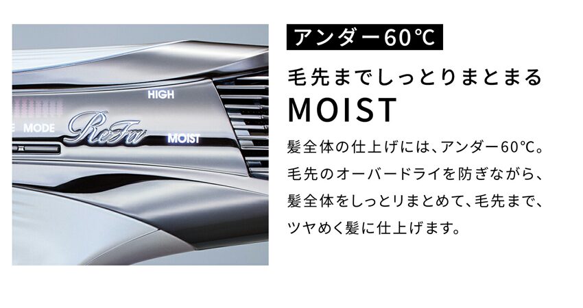 ReFa独自の温度自動制御機能「プロセンシング」は、髪の温度を感知して約60℃前後をキープ。