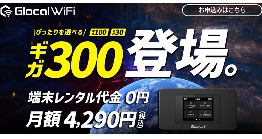 ① GlocalWiFi(ギガ300)|月300GBで4,290円のスーパー大容量クラウドWiFi