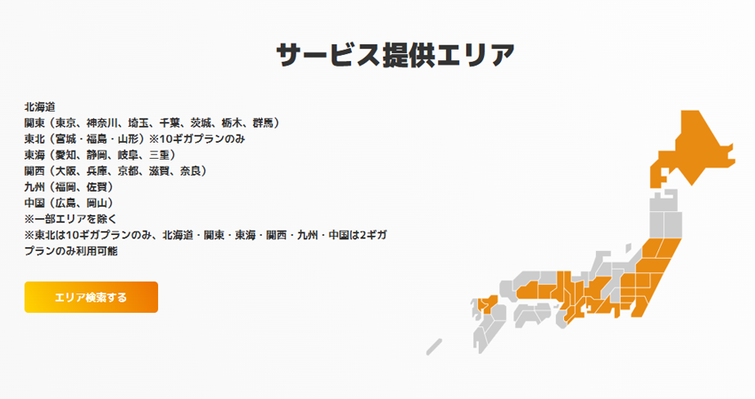 • 東北エリア(宮城・福島・山形)は「10ギガプラン」限定での提供です。