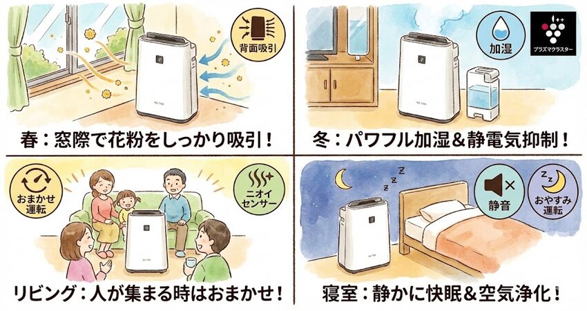 特に 花粉シーズンやインフルエンザ流行期 など、空気の質が体調に直結する時期に効果を実感しやすいのが特徴です。