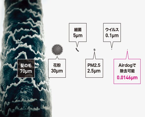 Airdog X3Dの最大の特徴は、0.0146μmという超微粒子まで除去できることです。