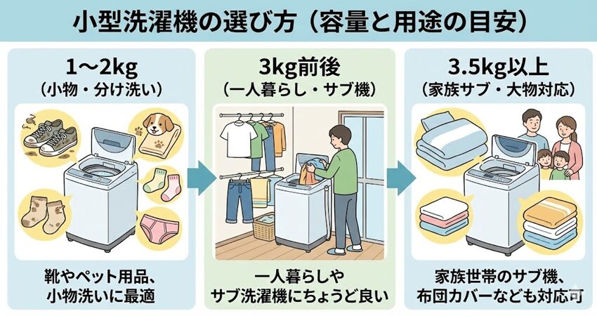 小型洗濯機は「メイン」か「サブ」かで選び方が変わります。