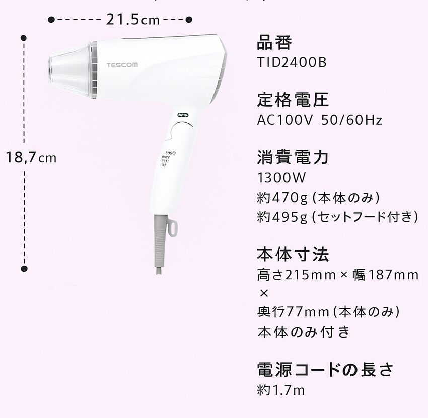 「毎朝のドライヤー時間をとにかく短くしたい!」という忙しい人にはTID2400Bがベスト。