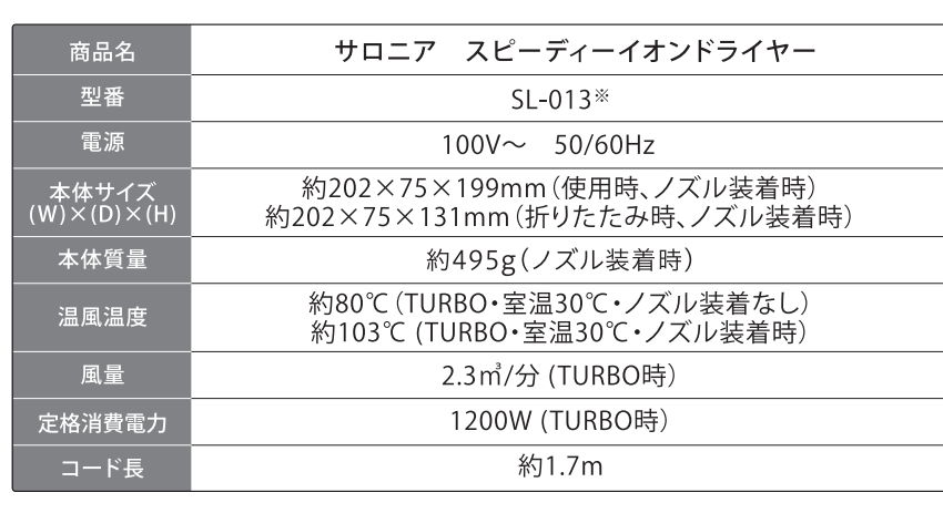 - 機能:マイナスイオン、SETモード、折りたたみ式