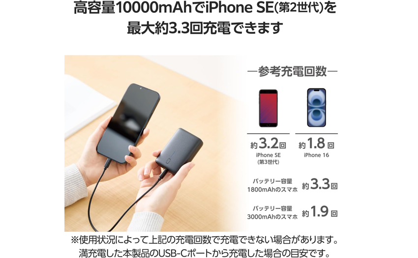 • 10,000mAh前後:日常使いに最適。スマホ2〜3回分。