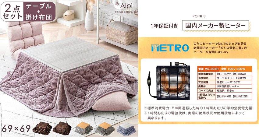 エアコンやファンヒーターに比べて 電気代が安く、乾燥しにくい こたつは、日本の冬に欠かせない暖房器具です。