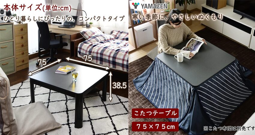 - 75×75cm前後(正方形) … 一人暮らし・ワンルーム向け