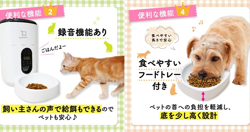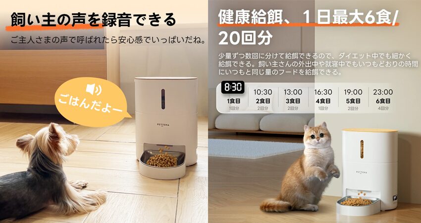 - メリット:初心者でも使いやすいシンプル設計・録音機能で犬が安心して食事できる