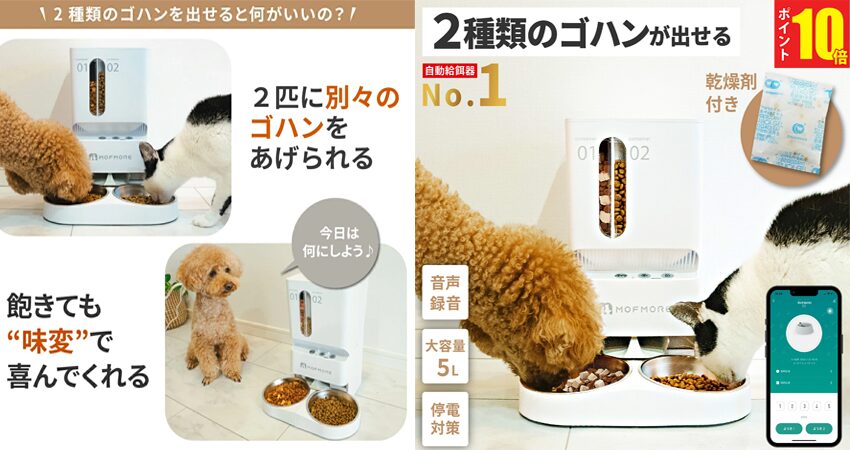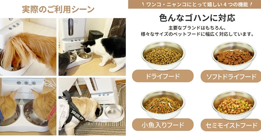 - ゴハン+おやつ、犬+猫などで分けて給餌可能