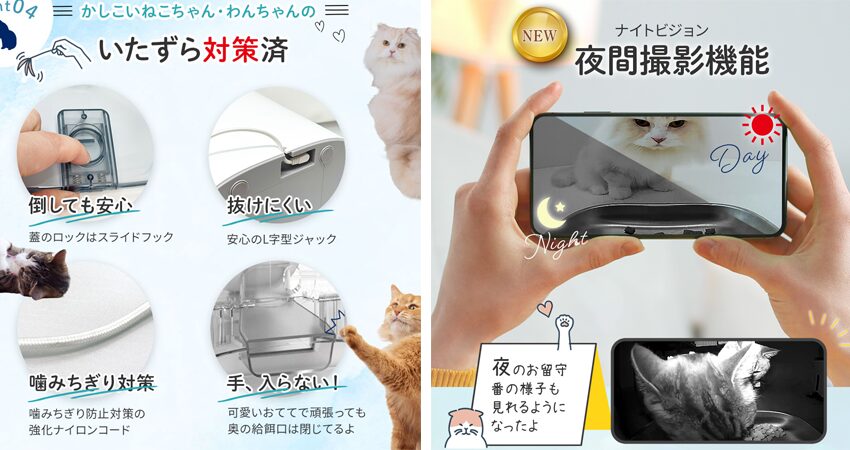- メリット:カメラ付きモデルとしては価格が手頃・留守中の食事を確認できる安心感