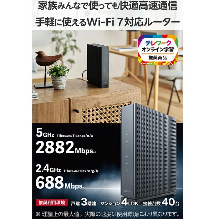 - ELECOM WRC-W701-B|1万円台でWi-Fi 7を体験できる国産入門機