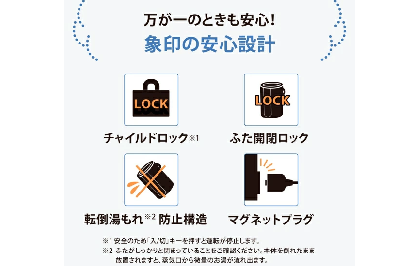 象印が評価される大きな理由が、安全設計の徹底です。