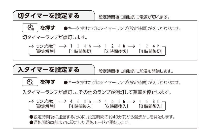 • 入タイマー(4・6・8時間後)