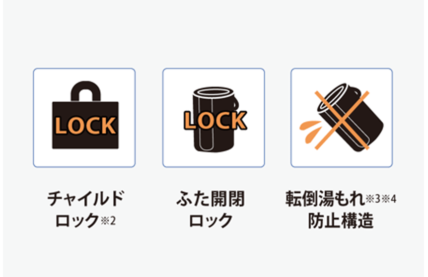 • 転倒湯もれ防止構造(内部構造で安全性を確保)